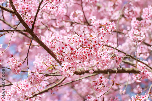 © jintana, Fototapeta premium Wild Himalayan Cherry Blossoms in spring season (Prunus cerasoides), Sakura in Thailand, selective focus