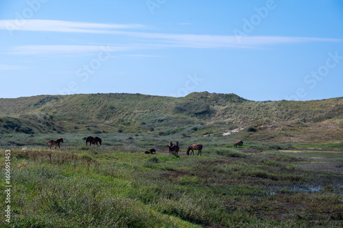 © Claudia Evans , Obraz premium Wild horse at a small lake in a dune landscape
