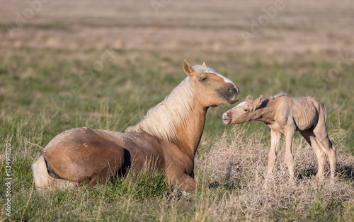 Fototapeta premium Wild Horse Mare and Her Foal in Springtime in the Utah Desert