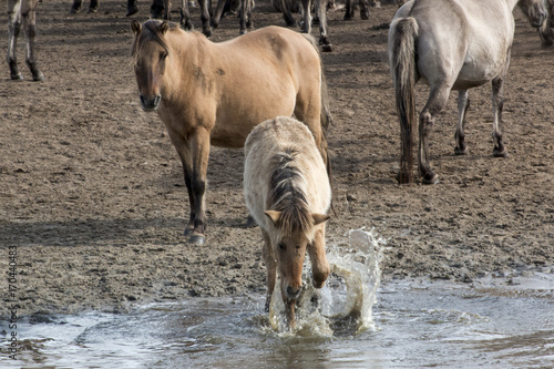 Fototapeta premium Wild horse of Duelmen foal playing
