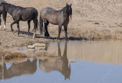© natureguy, Fototapeta premium Wild Horses Drinking at Desert Waterhole in Utah in Spring