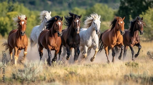 © siyons, Fototapeta premium Wild Horses Galloping Across the Plains
