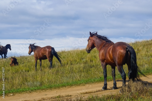 Obraz premium Wild horses graze on the meadows of Olkhon Island