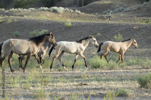 © spiritofamerica, Naklejka premium Wild horses walking in line at Black Hills Wild Horse Sanctuary, the home to America's largest wild horse herd, Hot Springs, South Dakota