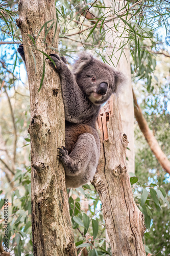 Obraz premium Wild koala climbing up a tree in Adelaide Hills, South Australia