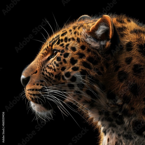 © Gro, Fototapeta premium Wild Leopard Portrait on Black Background Generative AI