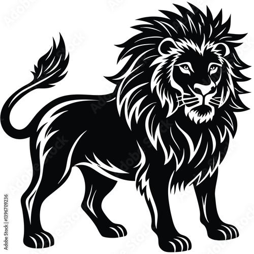 Obraz premium Wild lion head vector illustration, a black and white tribal art drawing