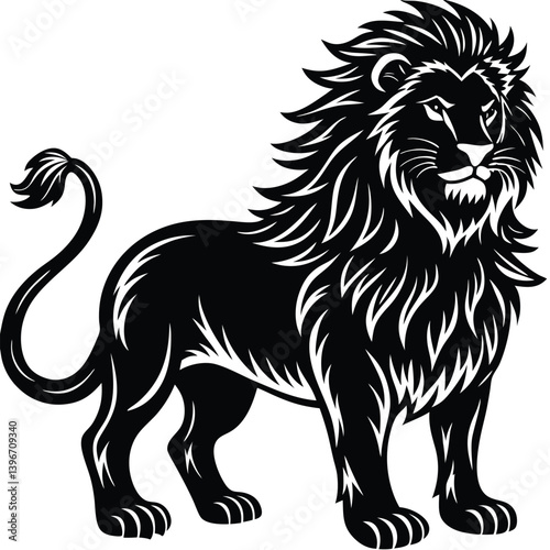 Naklejka premium Wild lion head vector illustration, a black and white tribal art drawing
