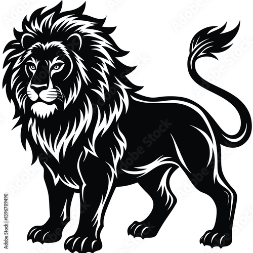 Fototapeta premium Wild lion head vector illustration, a black and white tribal art drawing