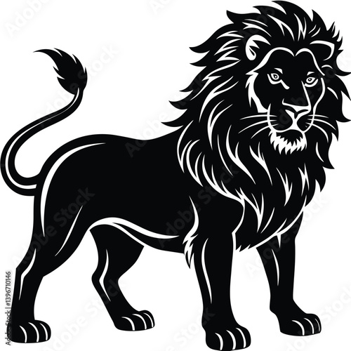Obraz premium Wild lion head vector illustration, a black and white tribal art drawing
