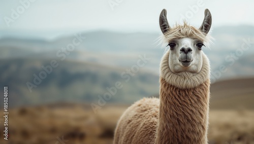 © vxnaghiyev, Fototapeta premium Wild llama standing amidst rocky landscape, highlighting conservation and erosion risk