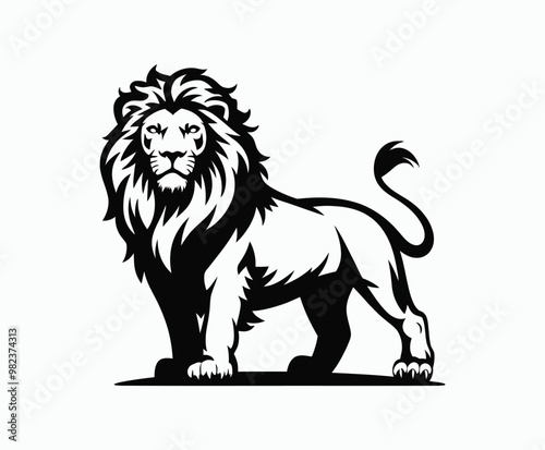 Obraz premium Wild majestic lion silhouette EPS vector animal illustration template on a...