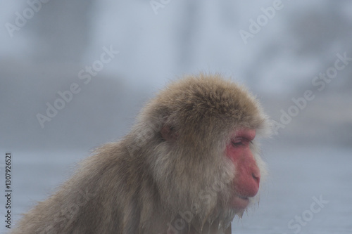 © Keiko, Naklejka premium Wild monkey in hot spring, Japan