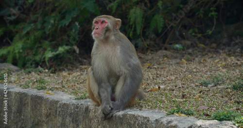 © leungchopan, Fototapeta premium Wild monkey sit on ground
