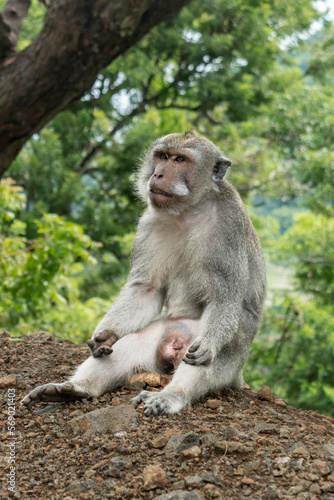 Fototapeta premium Wild monkey sitting quietly on the ground. Close-up