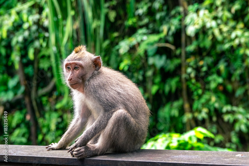 Fototapeta premium wild monkey thinking in monkey forest in bali. indonesia