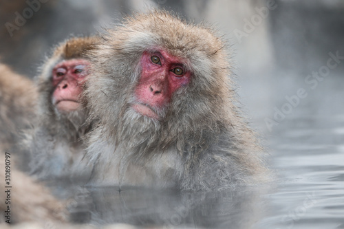 © Kevin, Naklejka premium Wild monkeys at Jigokudani hotspring (Japan)