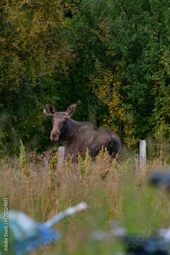 © Wirestock, Fototapeta premium Wild moose lying on the green grass