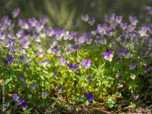 Naklejka premium Wild pansies, Johnny Jump up,Viola tricolor, native European wild flowers...