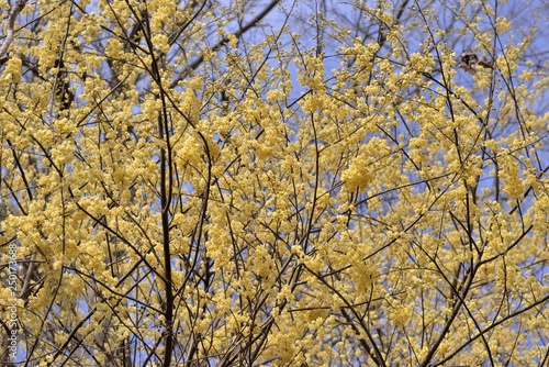 © chienmuhou, Fototapeta premium Wild pepper(Litsea cubeba) flower bloom, spire stone in Hsinchu, Taiwan