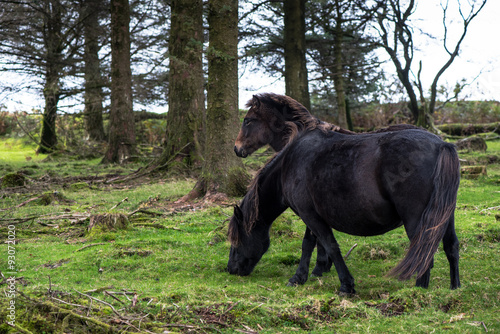 Fototapeta premium Wild pony horse grazing in autumn forest