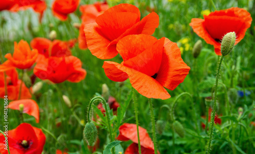 Fototapeta premium Wild poppies growing in a spring field