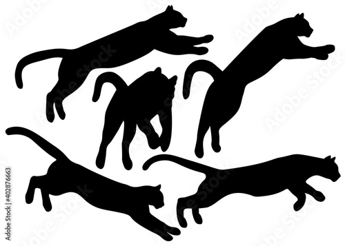 © Наталья Выгузова, Naklejka premium Wild puma in a jump set.