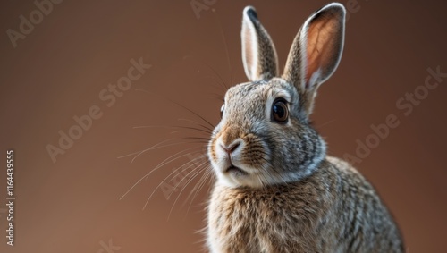 Fototapeta premium wild rabbit looking surprised on brown background copy space