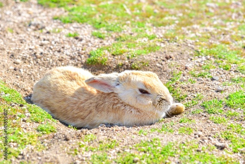 Obraz premium Wild Rabbit Relaxing on Okunoshima Island in Japan