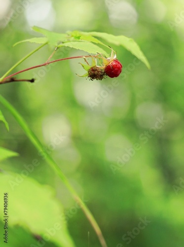 © Anna_ok, Obraz premium Wild raspberry bush in forest