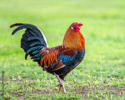 Fototapeta premium Wild Red Junglefowl or a rooster in a park