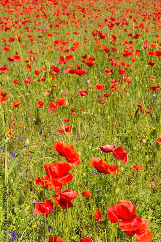 Fototapeta premium Wild red poppies growing in a fallow field in north east Italy.