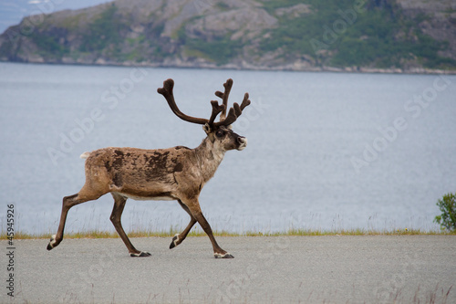 © VitalyTitov, Fototapeta premium Wild reindeer running, Scandinavia