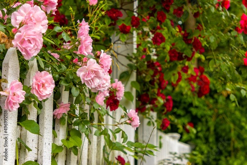 © Ajax9, Fototapeta premium Wild roses growing on fence
