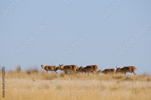 Naklejka premium Wild Saiga antelopes in morning steppe