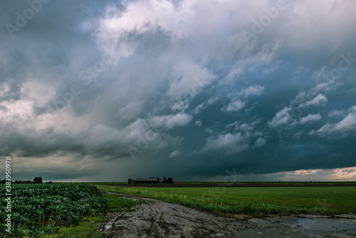 © Menyhert, Obraz premium Wild skies of an autumn rain shower over the dutch landscape
