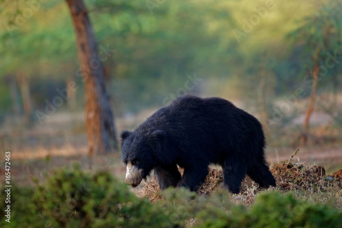 Fototapeta premium Wild sloth bear, Melursus ursinus, Ranthambore National Ppark, India. Sloth...