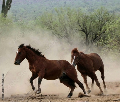 © Susie, Fototapeta premium Wild Stallions Sparring in Desert