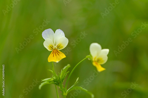 © ihorhvozdetskiy, Obraz premium Wild violet Viola tricolor in full bloom. Flower of wild violet Viola tricolor close up. Heartsease (Viola tricolor).