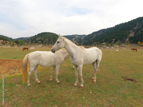 © G.E.G Digital Media, Fototapeta premium Wild white horse on grass