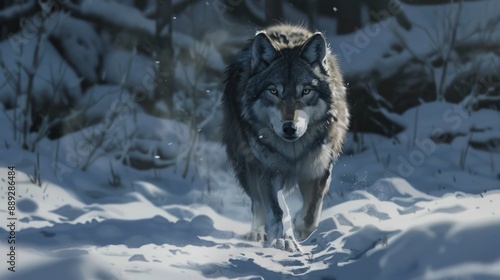© ThisDesign, Fototapeta premium wild wolf in natural habitat generative ai