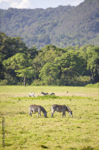 © kjekol, Fototapeta premium Wild zebras grazing in Africa