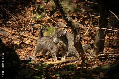 © Lucie, Fototapeta premium Wildcat with her cub.