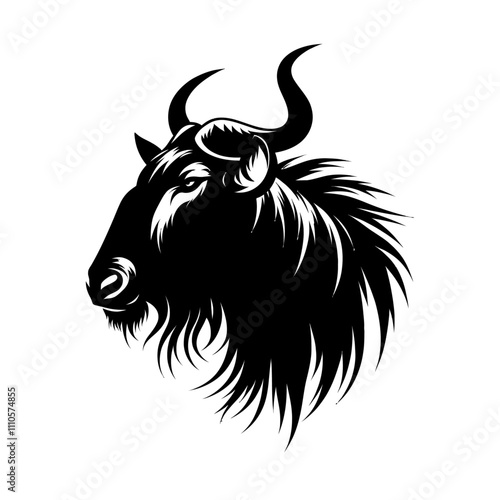 © mdjobayerhosen, Fototapeta premium Wildebeest head black color vector