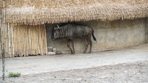 © setyahery, Fototapeta premium Wildebeests (Connochaetes taurinus) Walking in the grassland, Taman Solo Safari Zoo, Surakarta. Indonesia