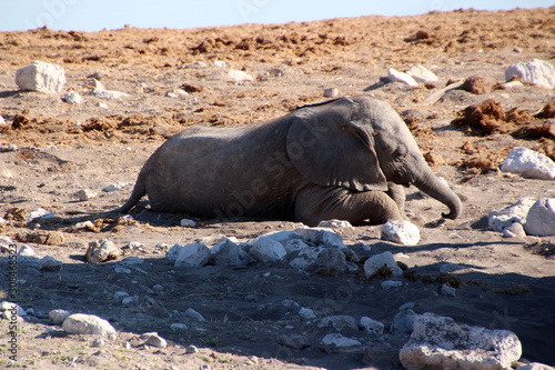 © zeralein, Fototapeta premium Wilder Elefant in der Savanne von Namibia Afrika
