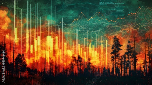 © TatChong, Obraz premium Wildfire Data Analysis: Forest Fire Impact Visualization