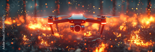Fototapeta premium Wildfire Prevention Drones: AI drones patrolling forests, detecting fires early with thermal sensors and deploying eco-friendly retardants. Mitigates climate-driven disasters through smart tech