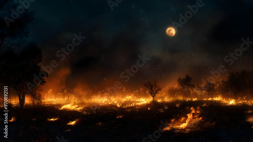 Fototapeta premium Wildfires at night