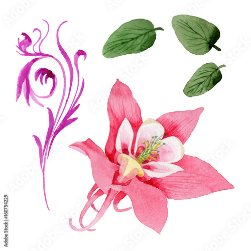 Obraz premium Wildflower aquilegia flower in a watercolor style isolated.